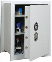 Модель WEGA-50-380 EL оснащается двумя полками, которые легко вынуть или установить на нужную высоту. На сейф наносится белое структурированное покрытие порошкового типа, предохраняющее от мелких царапин.